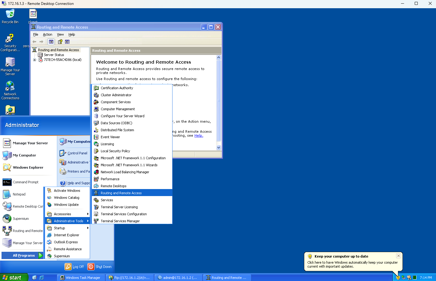 另外还有一个方法,来实现不需要虚拟机的NAT转发,就是使用Windows自带功能(WIN2003自带,更高系统需要在服务器管理器安装)。这个功能叫做:路由和远程访问(Routing and Remote Access)。